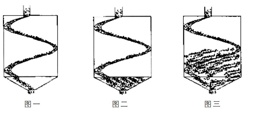 2、由于塊煤或原煤沿螺旋溜槽自然下滑至倉口中心,所以塊煤或原煤按照先后次序依次排出,防止在倉內(nèi)存積時間長而造成的粘倉及自燃現(xiàn)象。(見圖二)